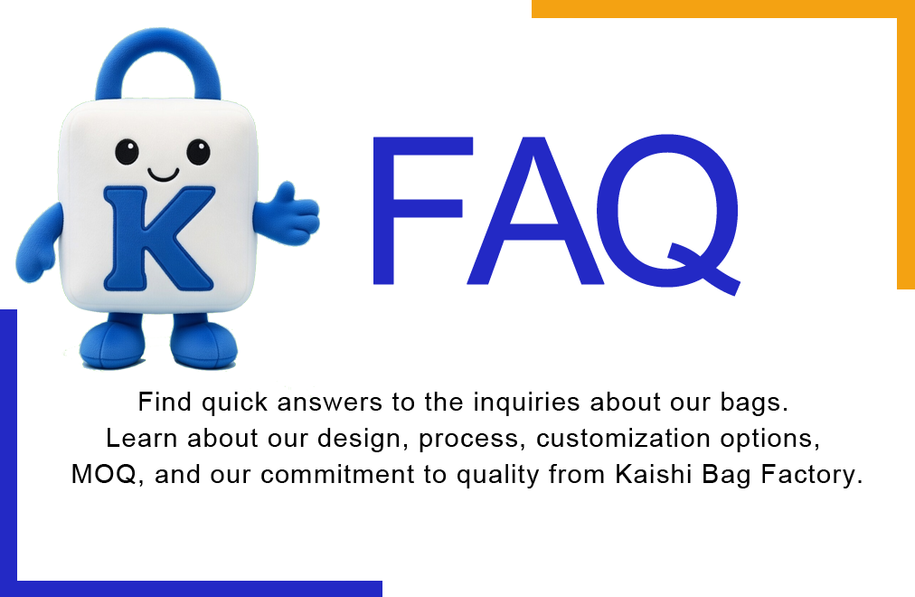 Find quick answers to common inquiries about our bags. Learn about our design, process, customization options, minimum order quantities, and our commitment to quality from Kaishi Bag Factory.