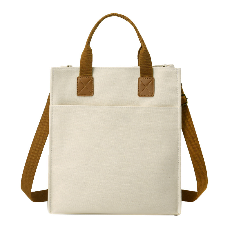 This canvas crossbody tote with PU contrast is ideal for fashion retailers, online brands, corporate gifting, travel lines, or seasonal private label collections. The clean design, front pockets, adjustable strap, and large capacity make it a bestseller in the competitive minimalist practical tote market.