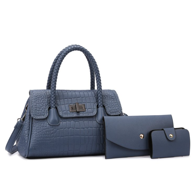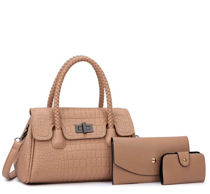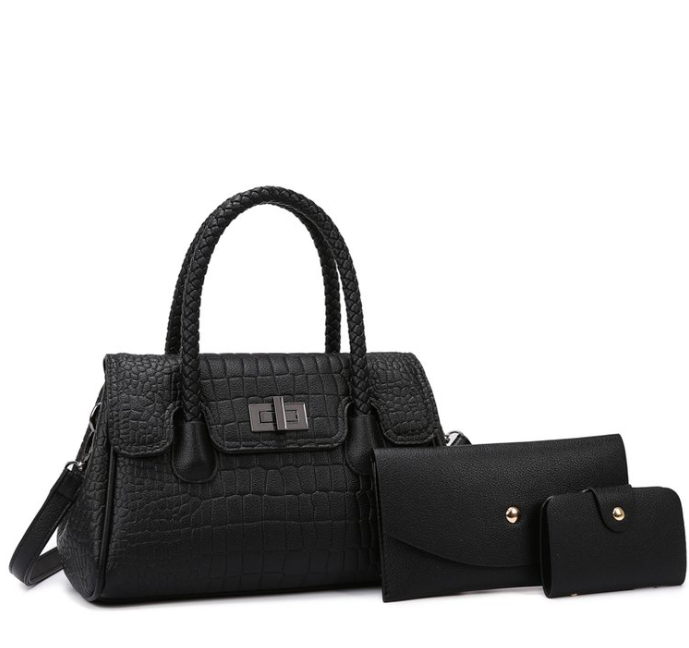 Custom Crocodile PU Leather 3-Piece Set – Tote Bag with Wallet & Card Holder