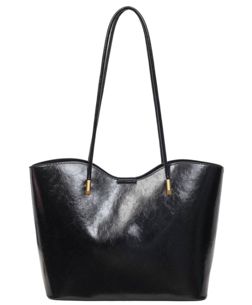 Custom Glossy PU Leather Tote Bag – Minimalist Large Capacity Shoulder Tote with Gold Hardware