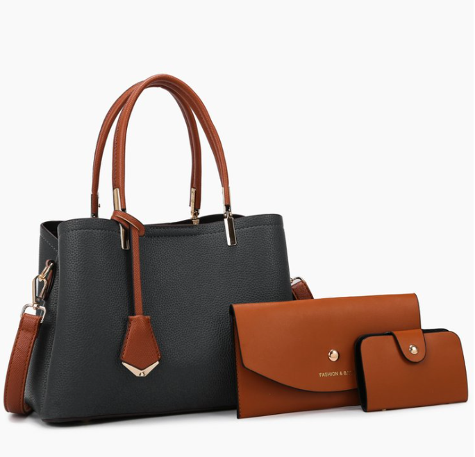 This 3-piece PU leather set is ideal for fashion retailers, online brands, corporate gifting, or seasonal private label lines. The coordinated design, structured shape, and gold details make it a bestseller in the competitive luxury handbag set market.