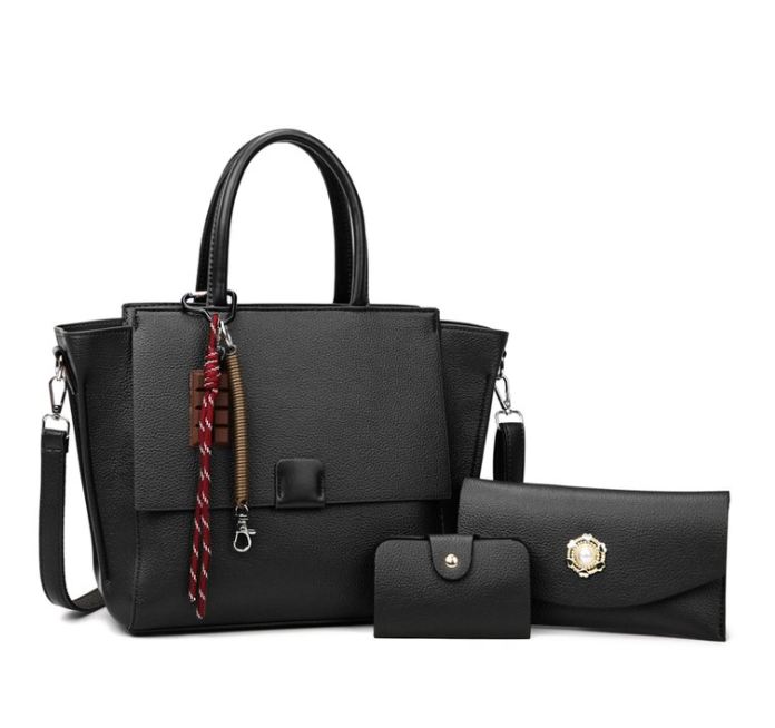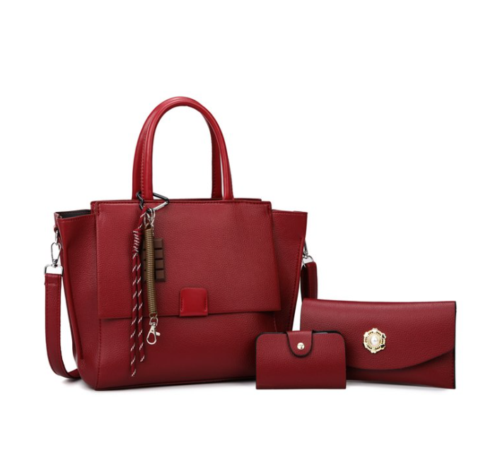Achieve effortless sophistication with this coordinated 3-piece PU leather set, featuring a structured tote bag as the centerpiece, matched with a long wallet and compact card holder. Crafted from premium pebbled PU leather, the set includes a signature decorative tassel charm on the tote for added elegance, gold-tone hardware accents, and a clean flap closure—ideal for modern professionals, fashion boutiques, retail brands, or private label collections seeking timeless matching luxury.