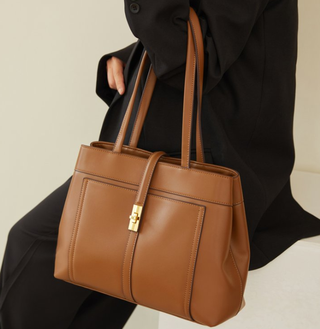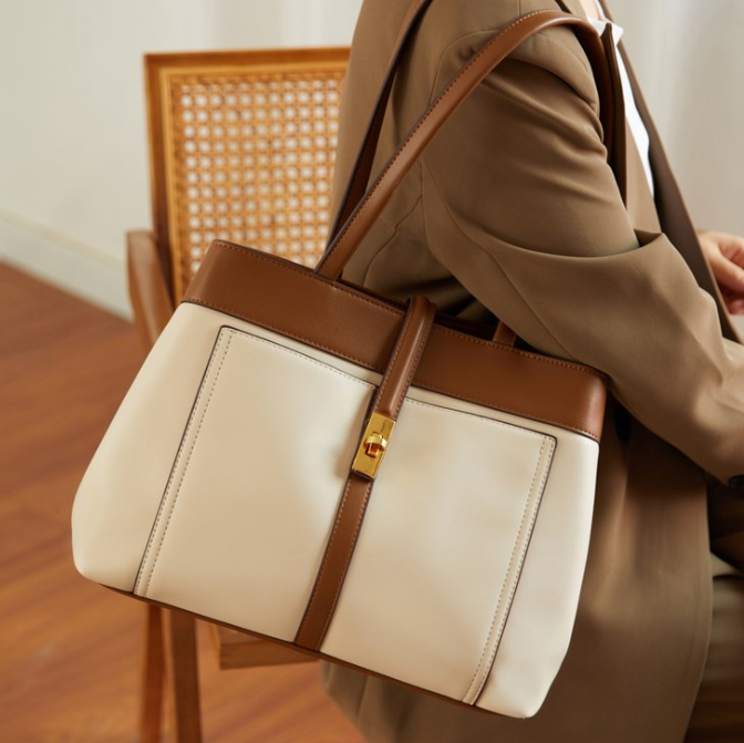 Available in classic, versatile tones—rich brown (main), sleek black, and soft beige—this large-capacity tote combines timeless design with practical functionality, aligning with 2026's trends in structured, high-capacity handbags that balance elegance and utility.