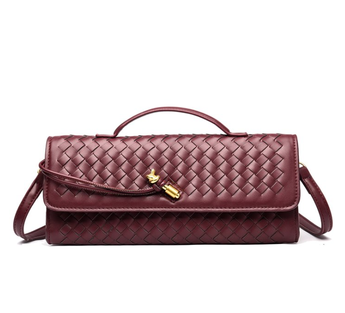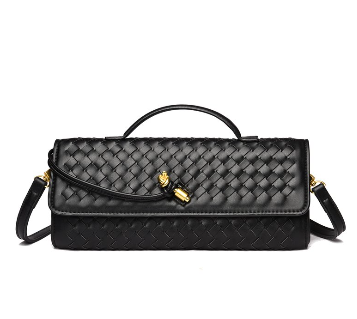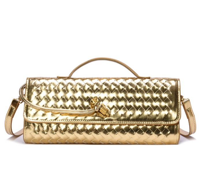 Custom Woven PU Leather Clutch Bag – Top-Handle Shoulder Bag with Gold Tassel Buckle