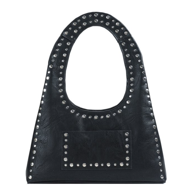 Custom PU Leather Hobo Bag – Rivet Studded Large Capacity Shoulder Bag