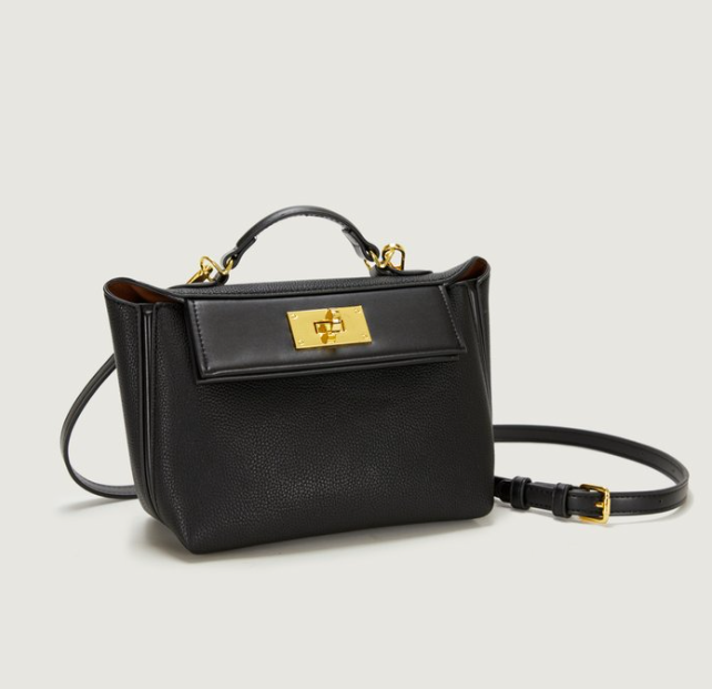 Custom PU Leather Mini Top-Handle Bag – Structured Satchel with Gold Buckle & Adjustable Strap