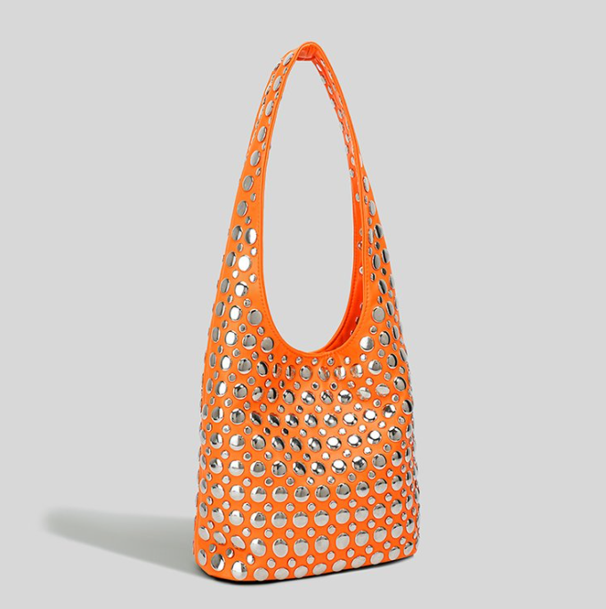 Custom PU Leather Hobo Bag – Rivet Studded Metallic Shoulder Bag with Drawstring